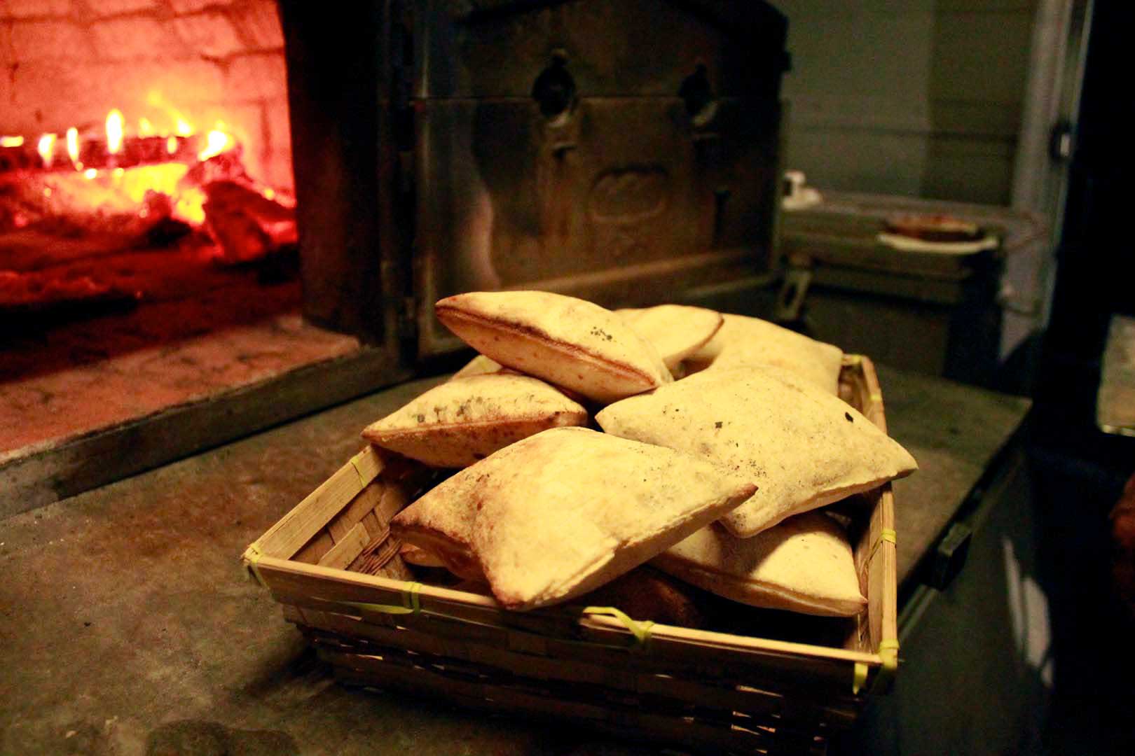 Tout se joue sur le choc thermique. Le four à bois doit atteindre une température très élevée. Une fois déposée sur la pierre, la fouée gonfle instantanément, créant un vide à l’intérieur tout en restant souple à l’extérieur. La cuisson est extrêmement rapide, souvent moins d’une minute, ce qui permet de la servir brûlante.